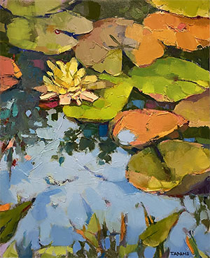 Here’s another example of a painter who seems to love oil paint as a medium. Check out the simple shapes describing the tree in the second painting. And, how about those juicy but crisp and colorful lily pads in the first painting. I could stare at each of these paintings for hours. And, I haven’t even seen either of them in person.
