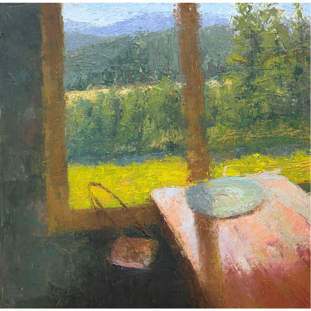 If you are getting away to Washington, VA this weekend, then (you lucky duck) you get to see the Fall Art Tour there. Be sure to visit Kathy Waller Stewart‘s beautiful studio on the tour. Here’s one of her gorgeous and colorful paintings. It’s called “After Breakfast” is 12 x 12 inches and painted in oils on panel.