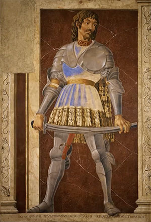 So the first crazy connection to this week’s painting is it’s inspiration. You may find this hard to believe but I’ll share the 1440 painting by Andrea del Castagna entitled “Pippo Spano.”