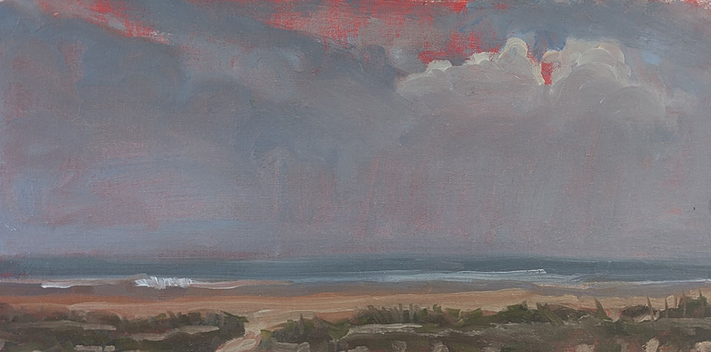 This week’s painting is 8×16 and was painted on location at one of our favorite getaway places “Topsail Island.” Here’s a larger view of it.