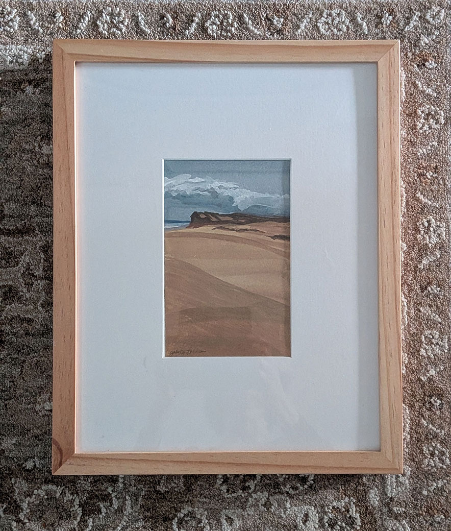 In Search of Serenity is a small but mighty painting of the southern end of an island of the east coast of the US. It’s painted in gouache on archival paper, matted and framed.